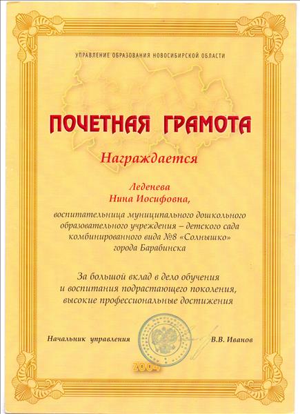04.02.2018ПОЧЁТНАЯ ГРАМОТА Управления образования НСО за большой вклад в дело обучения и воспитания подрастающего поколения, высокие профессиональные достиженияФайл