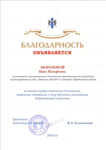 04.02.2018БЛАГОДАРНОСТЬ Губернатора НСО за высокие профессиональные длстижения,, творческое отношение к делу обучения и воспитания подрастающего поколенияФайл